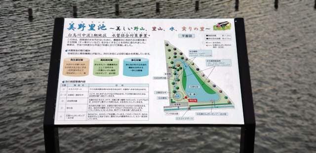 10年以上前から水質保全対策事業の一環として、整備が始められて明神池から「美野里池」として改名。