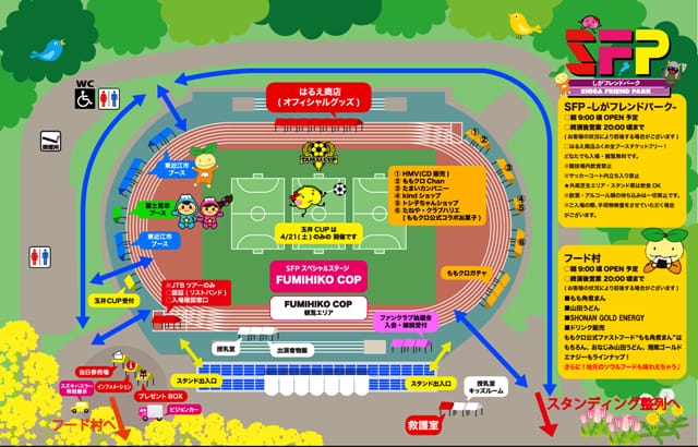 私は前日の20日は居ても立っても居られなくフライングで布引グリーンスタジアムへ下見に行ってきました、すでにステージが出来てて準備万端の状態でしたね。