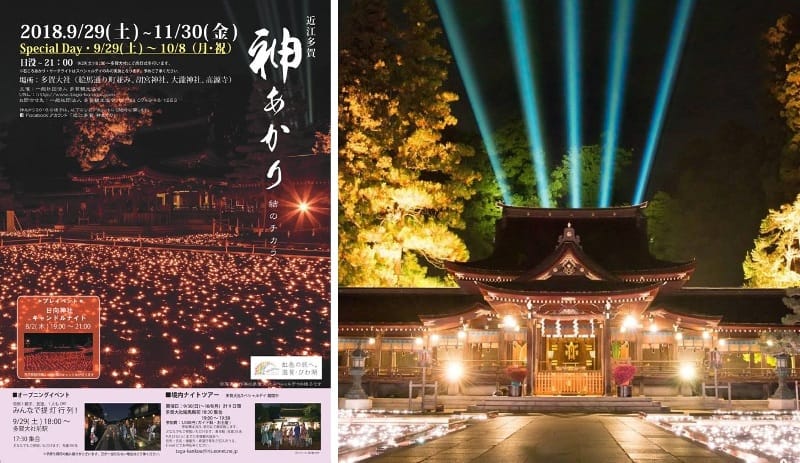 多賀大社(絵馬通り町並み、胡宮神社、大瀧神社、高源寺)の4社寺をライトアップします。