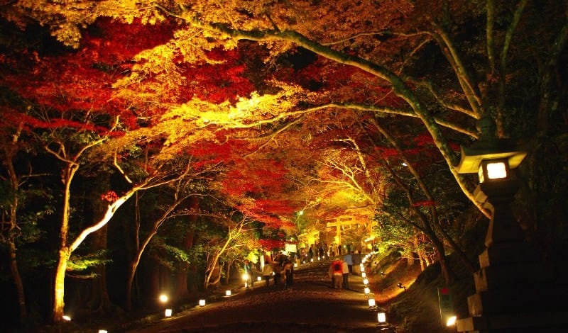 日吉大社から坂本一帯の神社仏閣では秋のライトアップが行われます。